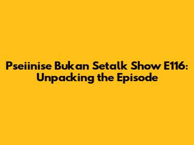Hey guys! Welcome back to the blog where we dive deep into the latest and greatest. Today, we're cracking open Pseiinise Bukan Setalk Show E116. Now, I know what you might be thinking – "What's this all about?" Well, settle in, grab your favorite drink, because we're about to go on a journey. This episode, titled "Pseiinise Bukan Setalk Show E116," really caught my attention. It’s not just another casual chat; there’s a substance here that deserves a closer look. We’re going to dissect its themes, explore the guests' insights, and figure out why this particular installment stands out. So, if you’re curious about what makes this episode tick, or if you’re just looking for a solid breakdown, you’ve come to the right place. We'll be talking about the core messages, the nuances, and maybe even uncover some hidden gems that you might have missed on your first watch. It’s all about getting the most out of our content, right? Let’s get started!