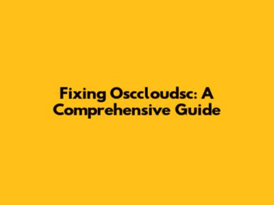 Fixing Osccloudsc: A Comprehensive Guide