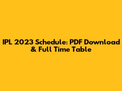 IPL 2023 Schedule: PDF Download & Full Time Table