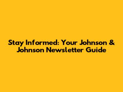 Stay Informed: Your Johnson & Johnson Newsletter Guide