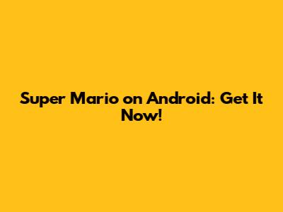 Super Mario On Android: Get It Now!