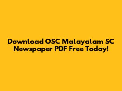 Download OSC Malayalam SC Newspaper PDF Free Today!