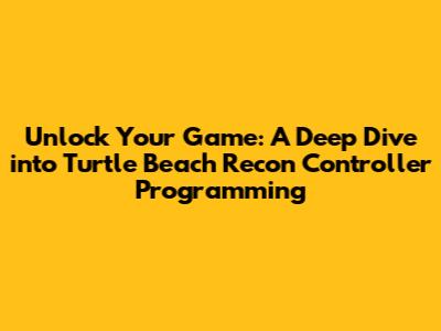 Alright gamers, let's talk about leveling up your play with the Turtle Beach Recon Controller. If you've snagged one of these bad boys, you know it's more than just a standard gamepad. It’s packed with features designed to give you that edge. But to really make it sing, you've gotta dive into its programming capabilities. We're not just talking about button mapping here, guys; we’re exploring how to fine-tune your experience for ultimate control and performance. From custom profiles to adaptive triggers, understanding how to program your Recon Controller is key to unlocking its full potential. So, grab your controller, settle in, and let's get this programming party started!