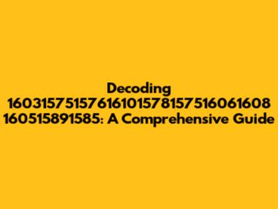 Hey guys! Ever stumbled upon a seemingly random sequence of numbers and wondered what it could possibly mean? Well, today we're diving deep into understanding the mysterious code: 16031575157616101578157516061608 160515891585. This article aims to break down this complex string, explore potential interpretations, and provide a comprehensive guide to help you decipher similar codes you might encounter in the future.