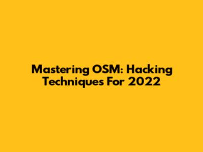 Mastering OSM: Hacking Techniques For 2022