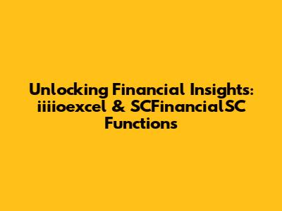 Hey guys! Ever felt like you're drowning in a sea of financial data, wishing you had a magic wand to make sense of it all? Well, fear not! Today, we're diving deep into the world of iiiioexcel and SCFinancialSC functions, your secret weapons for financial analysis. These powerful tools, often overlooked, can transform how you understand, manage, and leverage your financial information. We'll break down what they are, how they work, and how you can use them to unlock valuable insights. So, buckle up, because we're about to embark on a journey that will revolutionize your approach to finance! Ready to get started? Let's go!