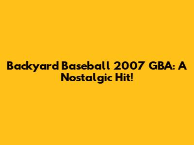 Backyard Baseball 2007 GBA: A Nostalgic Hit!
