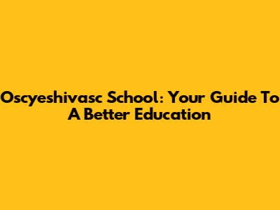 Oscyeshivasc School: Your Guide To A Better Education