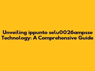 Hey everyone! Today, we're diving deep into the fascinating world of ippunto selu0026ampsse technology. If that sounds like a mouthful, don't worry – we'll break it down into bite-sized pieces, making sure everyone can understand what it's all about. This technology is making waves in various industries, and it's essential to grasp its potential and applications. So, grab your favorite beverage, sit back, and let's explore this exciting field together! In the following sections, we will delve into the core concepts, practical applications, and future prospects of ippunto selu0026ampsse technology. This technology, though complex in its underlying principles, is designed to enhance efficiency and create value in a variety of business contexts. Whether you're a seasoned professional or just curious, this guide is crafted to offer a solid understanding of what makes ippunto selu0026ampsse technology so significant. We'll start with the fundamentals, then move into real-world examples, exploring how this technology is currently used and what its potential future may hold. Ready to get started? Let’s jump right in, guys!