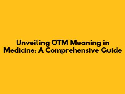 Hey guys! Ever stumbled upon the acronym "OTM" in a medical context and felt a little lost? Don't worry, you're not alone! Medical jargon can sometimes feel like a whole different language. But fear not, because we're about to dive deep into the OTM meaning medical, breaking it down in a way that's easy to understand. We'll explore what it stands for, when you might encounter it, and why it's important in the world of healthcare. So, grab your coffee, sit back, and let's decode this medical mystery together!