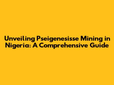 Hey guys, let's dive into something pretty fascinating: pseigenesisse mining in Nigeria! This isn't just about digging up rocks; it's a deep dive into an industry with its own set of unique characteristics, challenges, and, of course, opportunities. Nigeria, a country brimming with diverse mineral resources, has seen a growing interest in various mining activities, and pseigenesisse is no exception. In this guide, we're going to break down everything you need to know about this niche area of mining in Nigeria. We'll look at what pseigenesisse actually is, the current state of the industry, the legal framework that governs it, the challenges miners face, and the potential future of pseigenesisse mining in this vibrant African nation. Get ready for a detailed exploration, packed with insights and info to get you up to speed.
