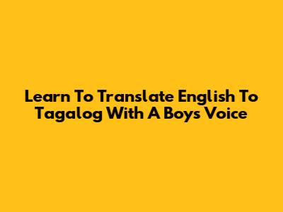 Learn To Translate English To Tagalog With A Boy's Voice