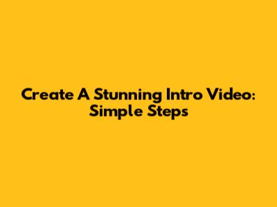 Create A Stunning Intro Video: Simple Steps
