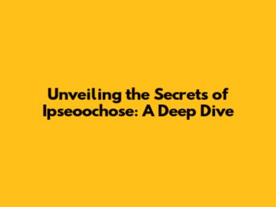 Demystifying Ipseoochose: The Basics