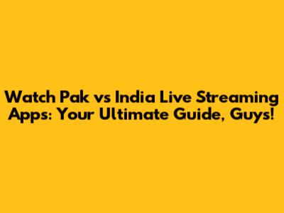 Watch Pak Vs India Live Streaming Apps