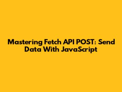 Mastering Fetch API POST: Send Data With JavaScript